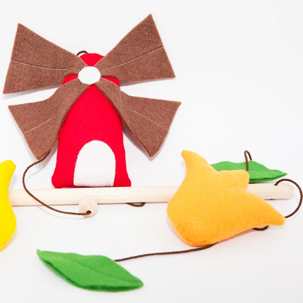 Wir stellen unser verträumtes Baby-Mobile Holland in liebevoller Handarbeit aus feinem Filz her. Es ist dreiteilig und besteht aus zwei Tulpen und ein Windrad.
