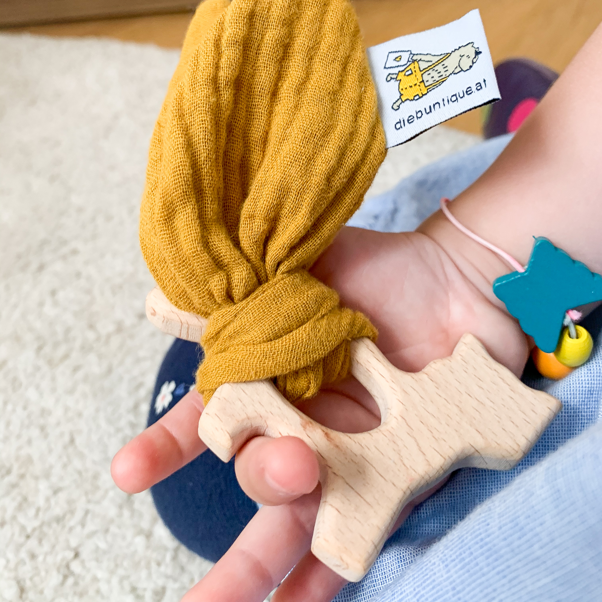 Auf Wunsch besteht auch die Möglichkeit, deinen Beißring Fuchs zu individualisieren. Zum Beispiel in deiner Lieblingsfarbe.