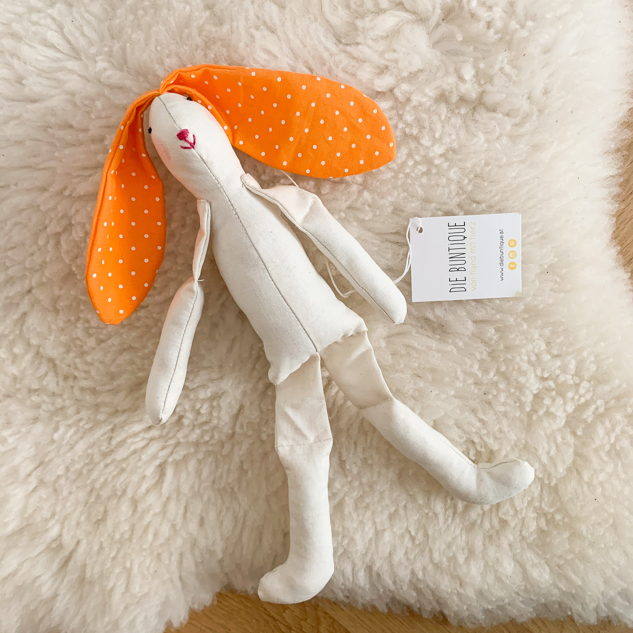 Unsere Hase wird in liebevoller Handarbeit, wie all unsere Puppen und Kuscheltiere, von Emi in Wien genäht. Jede Einzelne davon ist etwas ganz Besonderes und hat einen eigenen Charakter.
