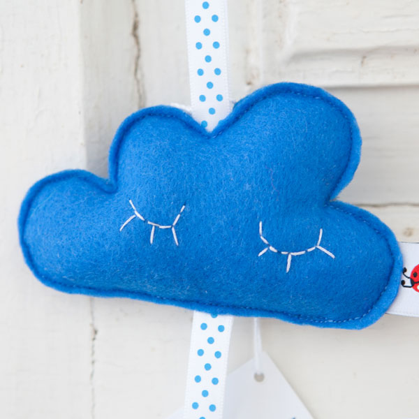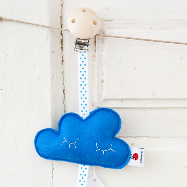 Der reizende Kinderwagenanhänger Wolke wird mit ganz viel Liebe von Hand gefertigt. Das kleine Glöckchen ist nicht nur allerliebst, es fördert auch den Hörsinn und die Motorik des Babys. Durch den Holzclip kann man den Anhänger ganz einfach am Kinderwagen, dem Kindersitz oder Maxi-Cosi anbringen. Auch am Gitter, oder Holzbettchen ist  er ein absoluter Hingucker!