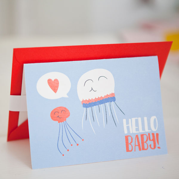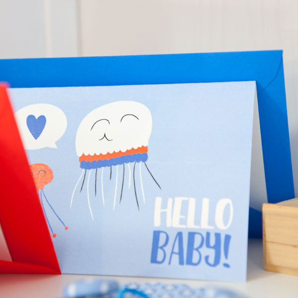 Klappkarte mit Kuvert zur Geburt – Qualle
