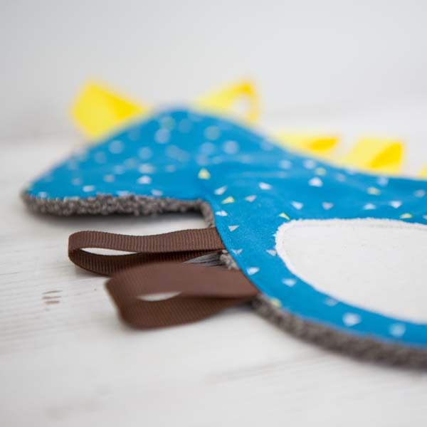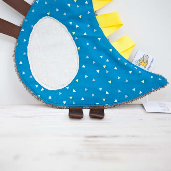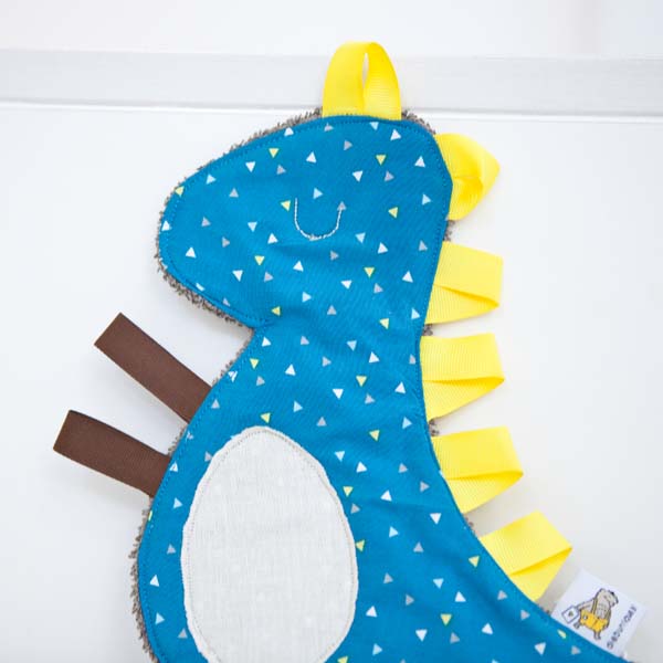 Unser Knistertuch – Dino wird, wie all unsere Baby und Kinderartikel, in liebevoller Handarbeit gefertigt. Es ist nicht nur super kuschelig, sondern knistert auch ganz wunderbar beim Angreifen. Die bunten Schleifen am Rücken eignen sich perfekt zum Spielen und zum Reinbeißen.