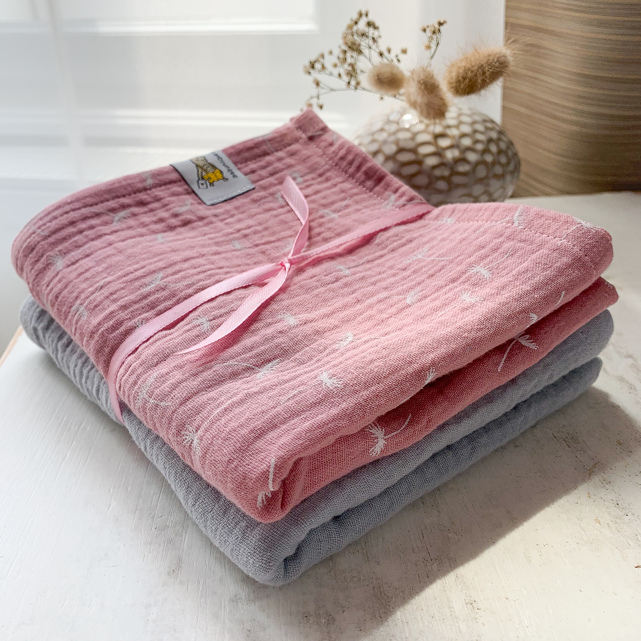 Musselin Tücher Set rosa & grau
