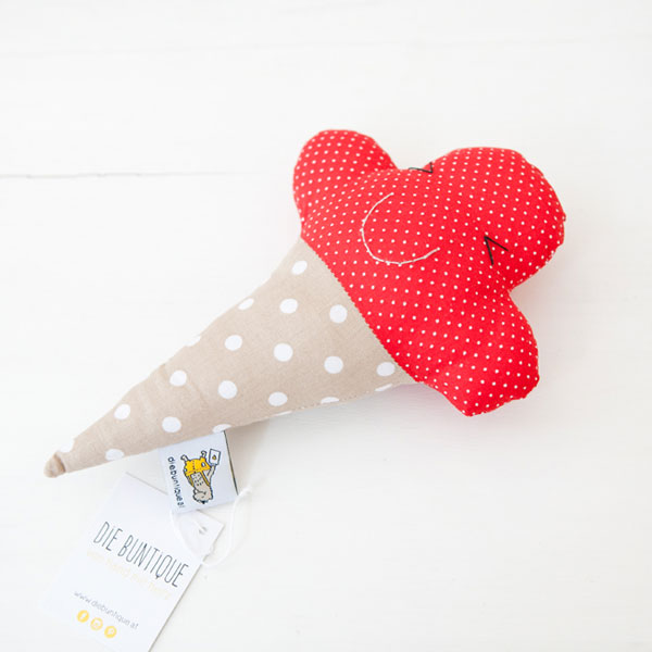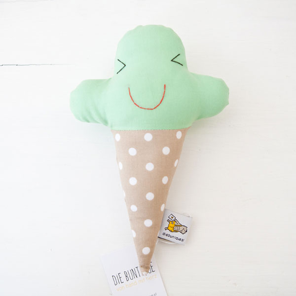 Wir lieben unsere praktische Rassel – Eis und stellen sie mit ganz viel Liebe in 100 % Handarbeit aus reiner Baumwolle her. Eine Rassel ist ein ideales Spielzeug für Babys da sie durch die lustigen Geräusche die Motorik, den Hörsinn und das Rhythmusgefühl fördert. Und solltest du einmal allzu ausgelassen mit der Rassel spielen, kann man sie ganz einfach bei 30 Grad waschen.