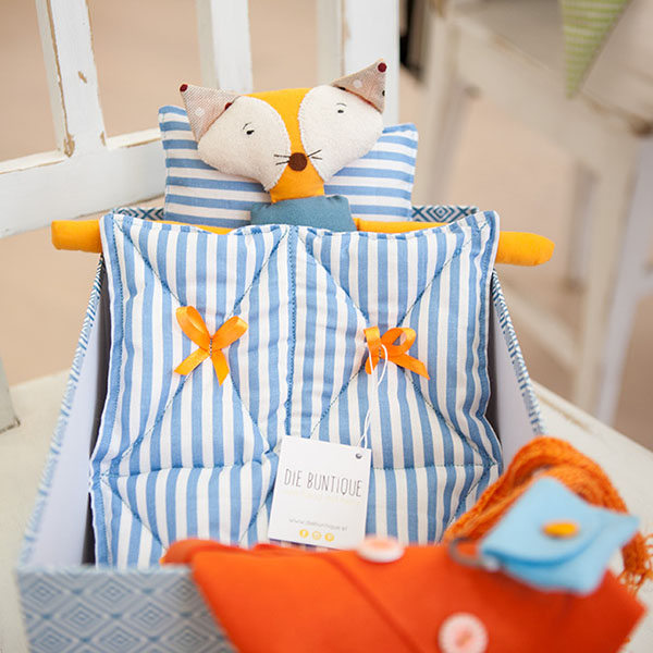 Darf ich vorstellen Fuchs Felia ihrer Spielkiste. Sie ist zwar eher ruhig und etwas zurückhaltend, aber wenn man sie erst einmal kennt, ein absolut treuer Wegbegleiter und richtiger Kuschelfreund. Wie alle unsere Tierkisten wird auch Felia in liebevoller Handarbeit für euch genäht. Sie ist dadurch ein absolutes Einzelstück und etwas ganz Besonderes. Sie ist ein ganz wunderbares Geschenk für Mädchen die ihre Puppen gerne an- und ausziehen, denn ihr findet für jede Jahreszeit und Gelegenheit die richtigen Accessoires mit in ihrer Schatzkiste. Nach einem langen Tag voller Spiele und Outfitwechsel kann man die Spielkiste ganz schnell in ein Bettchen verwandeln, denn drin sind auch ein Polster und eine Decke versteckt.
