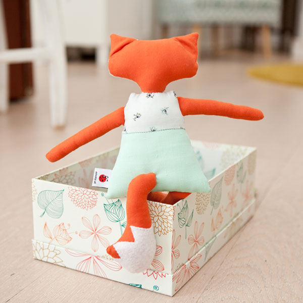 Darf ich vorstellen Fuchs Pia ihrer Spielkiste. Sie ist zwar eher ruhig und etwas zurückhaltend, aber wenn man sie erst einmal kennt, ein absolut treuer Wegbegleiter und richtiger Kuschelfreund. Wie alle unsere Tierkisten wird auch Pia in liebevoller Handarbeit für euch genäht. Sie ist dadurch ein absolutes Einzelstück und etwas ganz Besonderes. Sie ist ein ganz wunderbares Geschenk für Mädchen die ihre Puppen gerne an- und ausziehen, denn ihr findet für jede Jahreszeit und Gelegenheit die richtigen Accessoires mit in ihrer Schatzkiste. Nach einem langen Tag voller Spiele und Outfitwechsel kann man die Spielkiste ganz schnell in ein Bettchen verwandeln, denn drin sind auch ein Polster und eine Decke versteckt.