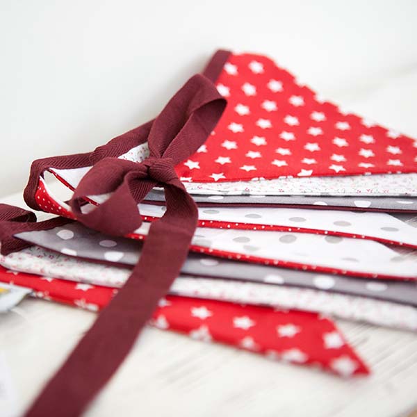Die Wimpelkette – rot und grau wird in liebevoller Handarbeit aus 100% Baumwolle hergestellt. Sie ist 1,5m lang und die Fähnchen in Rot und Grautönen wechseln sich immer wieder ab. Da alle unsere Wimpelketten von Hand hergestellt werden, ist jede ein Unikat. So kann sein, dass sie sich ein wenig von der hier abgebildeter Wimpelkette unterscheiden. Die Farbtöne rot und grau bleiben aber immer erhalten.